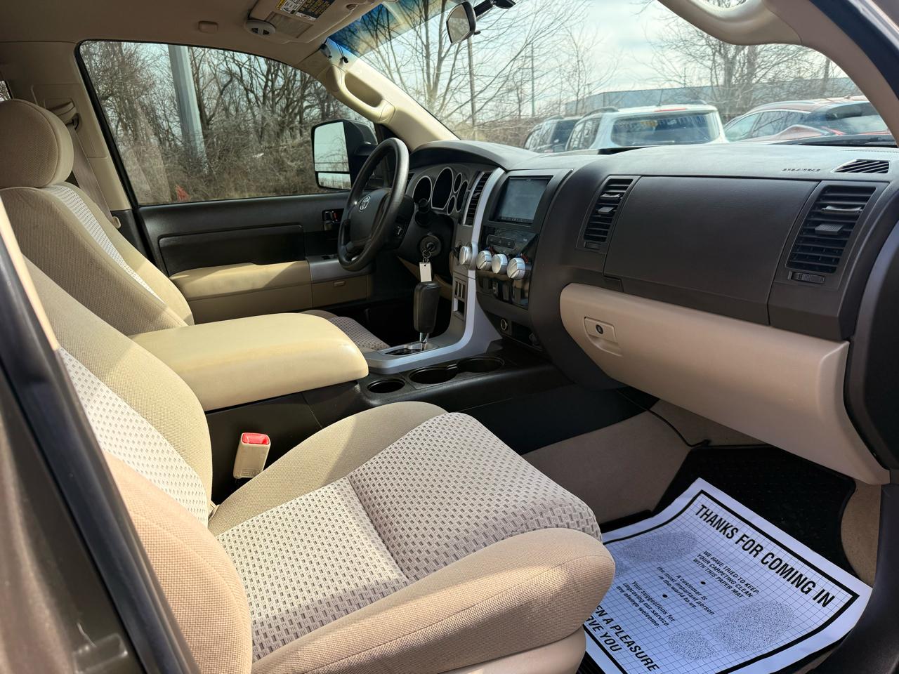With features like front tow hooks, rear sliding and reclining fold-flat seats, and dual-zone air conditioning, this Tundra offers both practicality and comfort. The interior boasts an array of amenities including cruise control, power windows, and rear air conditioning ducts for optimal climate control.