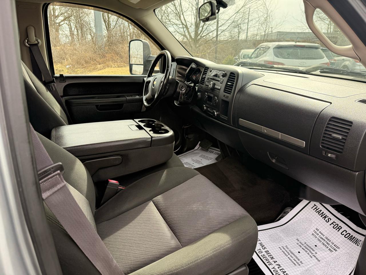 Check out this sleek Silver 2013 Chevrolet Silverado 2500HD! This powerhouse of a truck is ready to take on any adventure with its heavy-duty features and rugged design. Equipped with a 3.73 rear axle ratio and a high-capacity air cleaner, this Silverado means business when it hits the road. The Handling/Trailering suspension package ensures a smooth and stable ride, while the 4-wheel antilock disc brakes provide excellent stopping power. Inside, you'll find a comfortable interior with a leather-wrapped steering wheel, power windows, and a driver information center to keep you informed on the go. Safety features include StabiliTrak stability control and multiple airbags to keep you protected at all times. Plus, with a Carfax report available, you can purchase with confidence knowing the vehicle's history. So whether you're hauling heavy loads or cruising around town, this Silverado 2500HD is the perfect blend of power and comfort for all your driving needs.